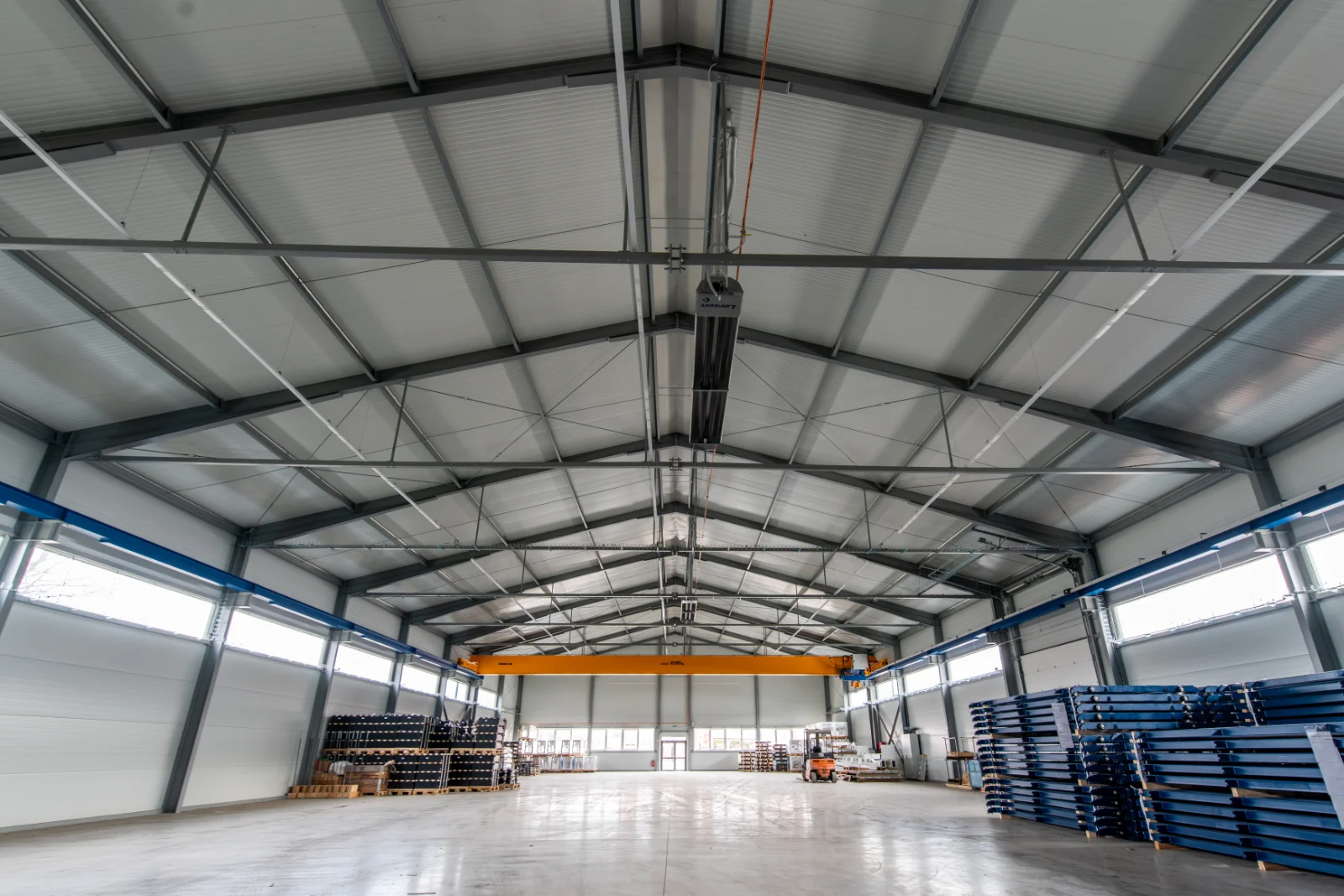Budova je rozdělena na dvě části. První část tvoří sklad o výměře 1596m², druhou část o výměře 135,4m² zázemí pro administrativní účely. Vnější rozměry haly jsou 72,4 x 24,5 m, výška po hřeben střechy činí 10,4 m. Nabízí se zde také možnost využívání venkovních ploch o výměře cca 500 m² jako dalších skladových prostor. Tato plocha je vydlážděna zámkovou dlažbou. Vjezd do budovy je zajištěn průmyslovými sekčními vraty z čelní a boční strany. Primární konstrukci tvoří ocelové svařované plnostěnné rámy, Ocelové nosníky jsou dimenzovány na jeřábovou dráhu.