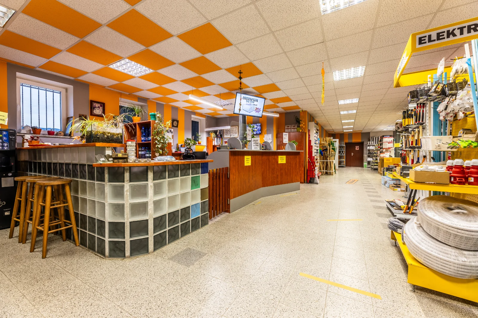 Objekt je připojen na elektřinu, plyn i vodovod. Budova je vytápěna plynovým kotlem a zateplena polystyrenem. Osvětlení haly je umělé, se stropními svítidly s LED technologií, i přirozené, které je vytvořeno díky oknům. Co se týče podlahových krytin, ve skladové části je betonová podlaha, v prodejním prostoru terasová dlažba a kanceláře a hygienické zázemí disponuje keramickou dlažbu.